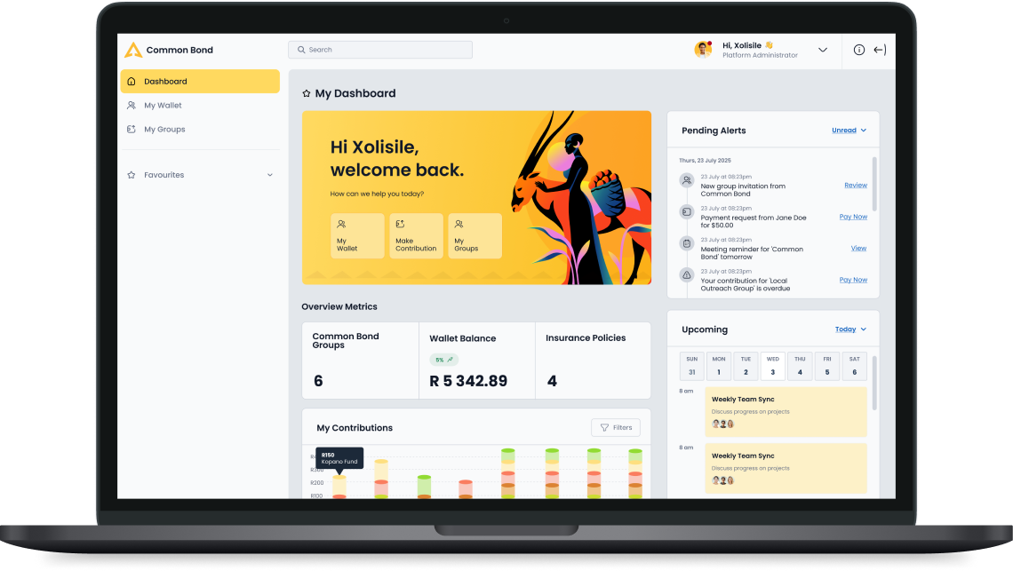 The common bond platform channels the strength of trust-based social networks - family, friends, congregants, cooperatives into structured financial value, transforming traditional mutual aid practices into a formal digital ecosystem.